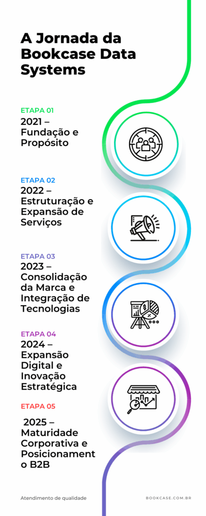A Bookcase Data Systems é uma empresa brasileira de tecnologia da informação e comunicação (TIC) especializada em desenvolver soluções digitais integradas, escaláveis e orientadas a resultados. Nosso propósito é tornar a transformação digital acessível, segura e estratégica para microempreendedores, autônomos e pequenas empresas que desejam operar com eficiência e competitividade no mercado digital.